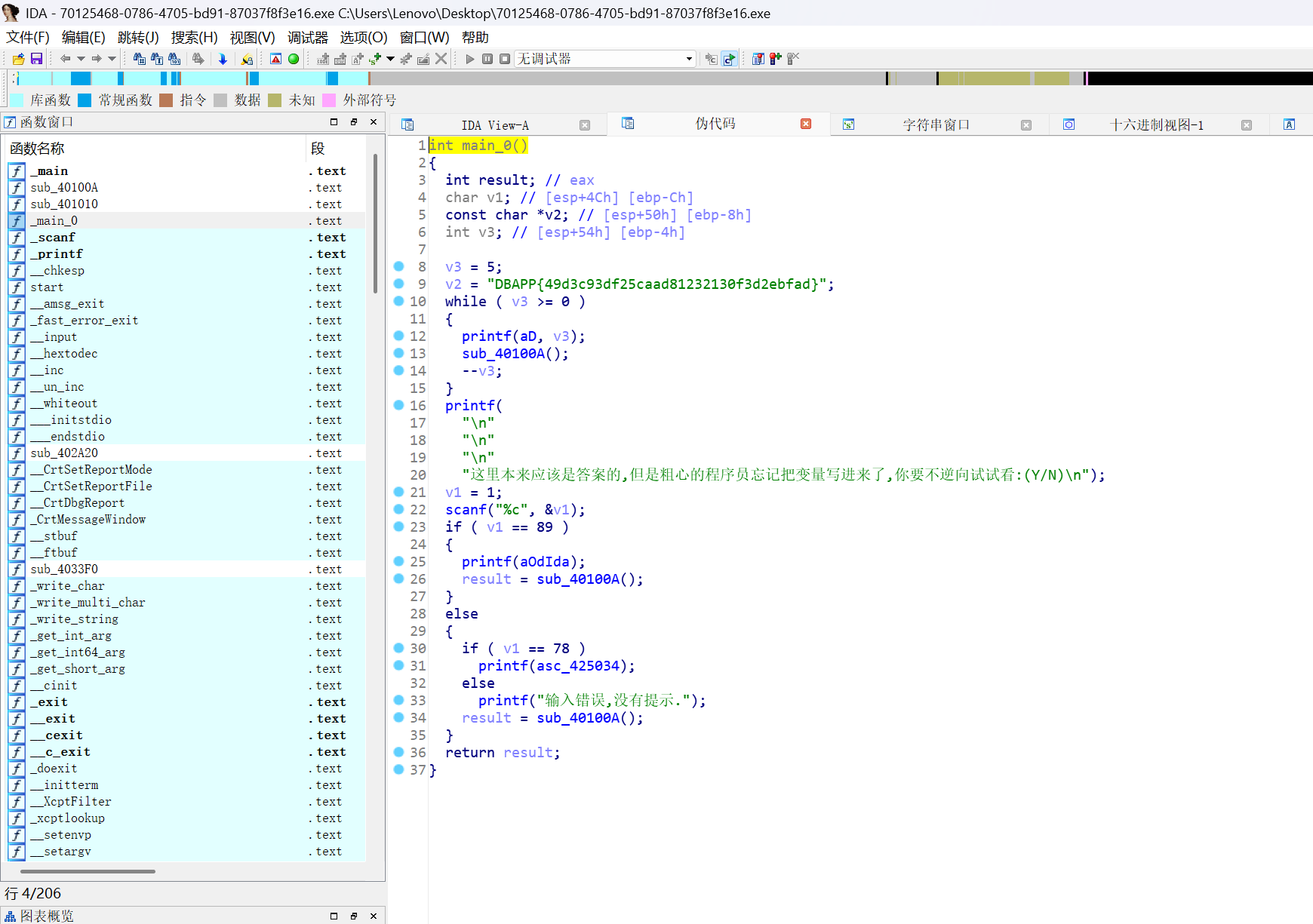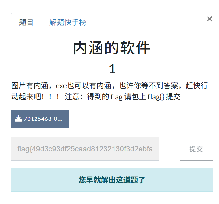 一眼看到第9行{}括起来的内容,有点像flag的格式,复制下来,括号前加flag,返回题目试试