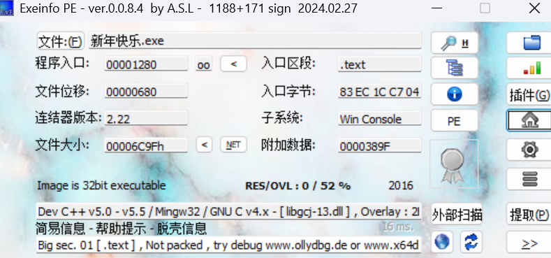 下载压缩包,解压,把解压后的文件拖进Exeinfo PE进行分析