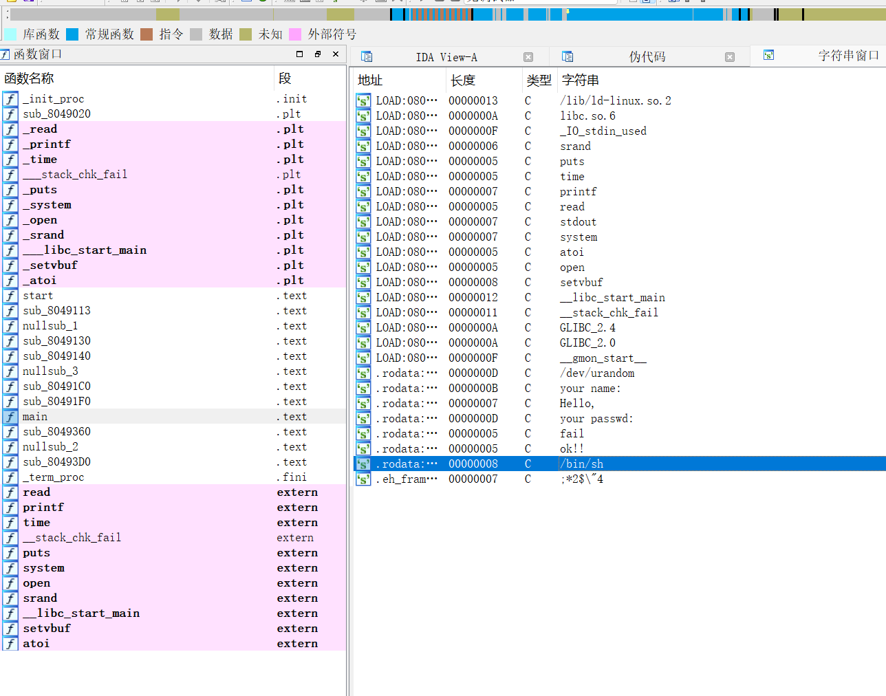 有system和/bin/sh,但是都没啥用,这俩都在main里