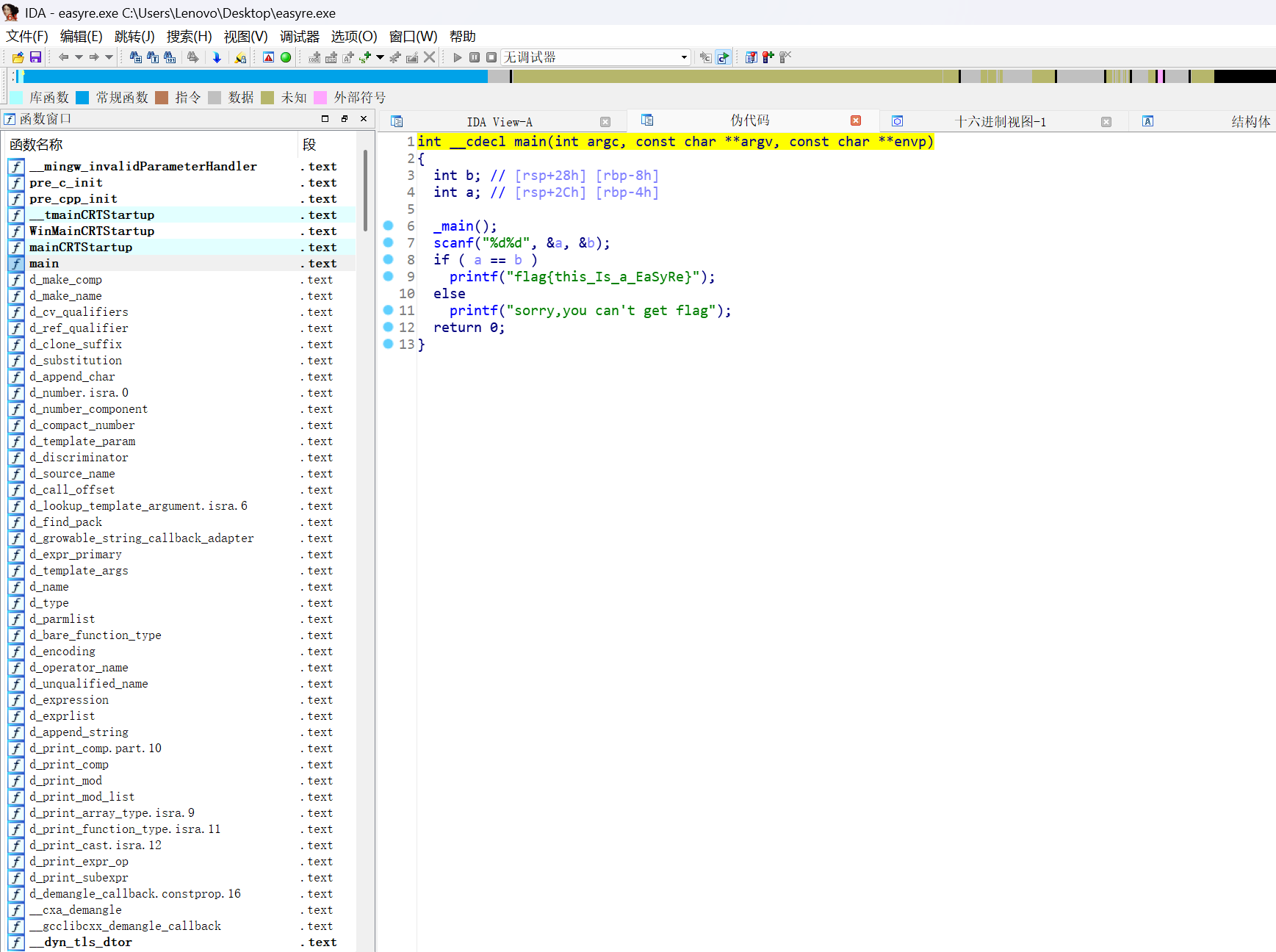 按F5反编译成c语言