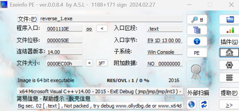 下载压缩包,解压,把解压后的文件拖进Exeinfo PE进行分析