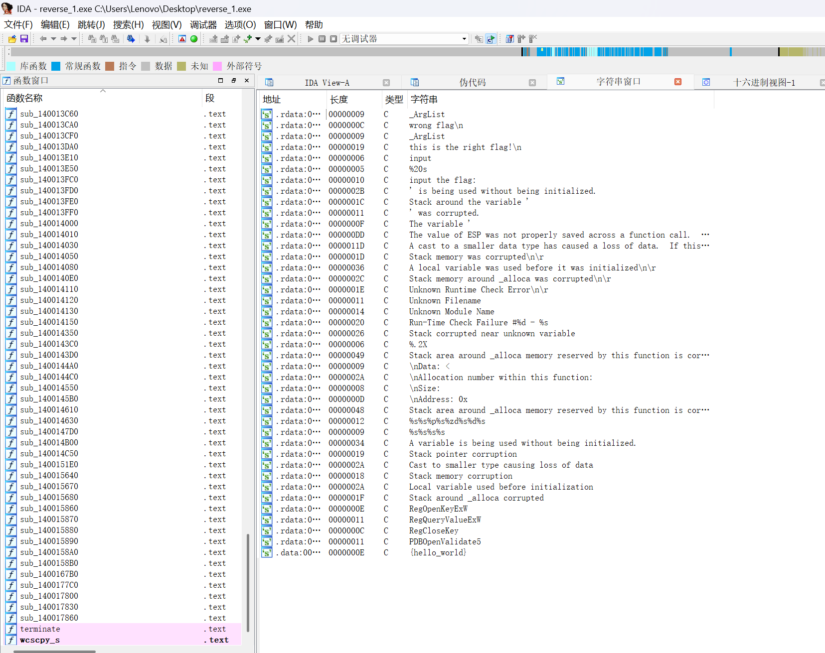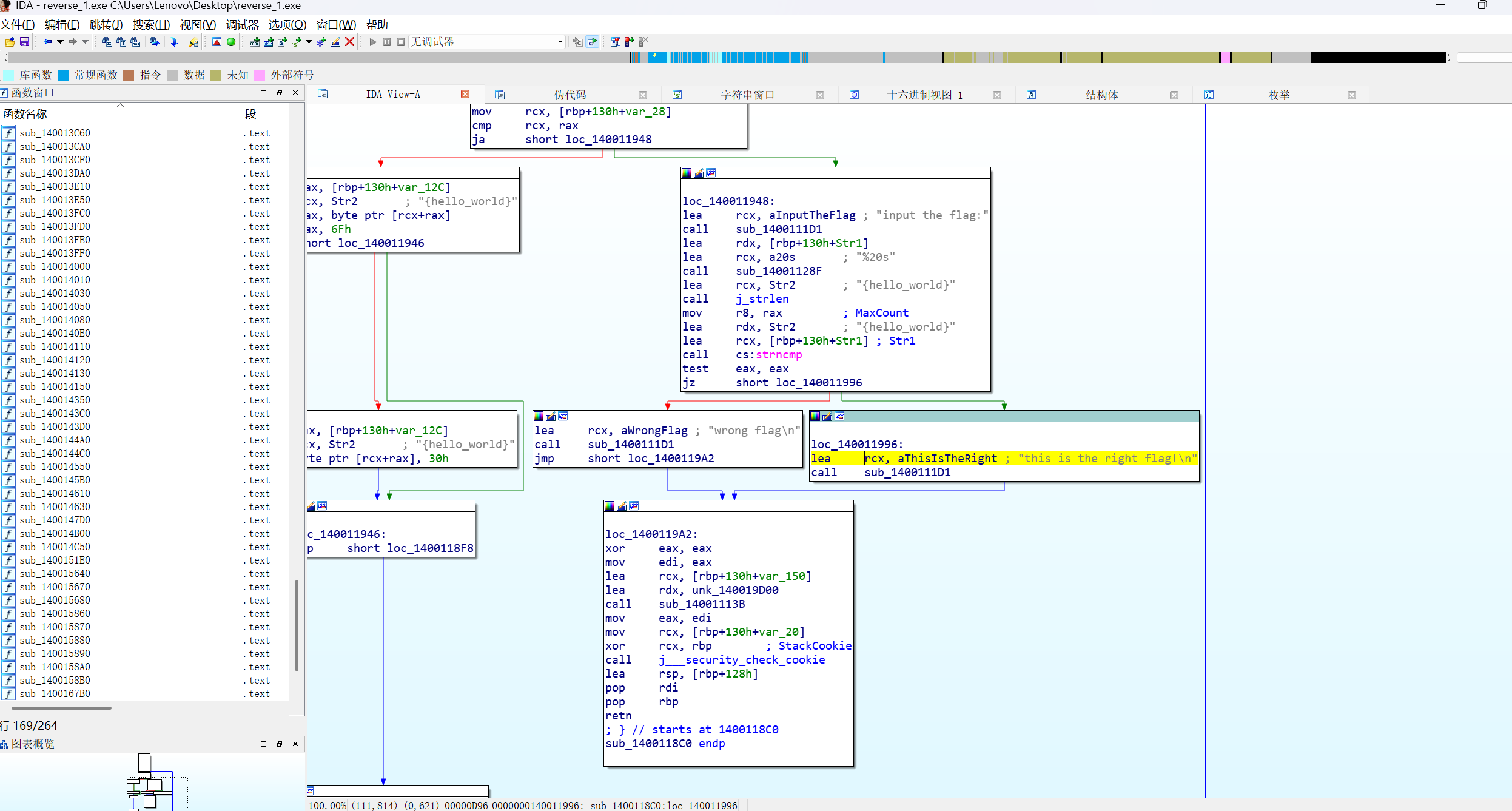 因为逆向需要猜像sub_1400111D1这种的实际表达意义是啥,因此我们从我们点进来的this is the right flag这行代码开始往上看(当然,也可以直接从最上面分析到最下面)