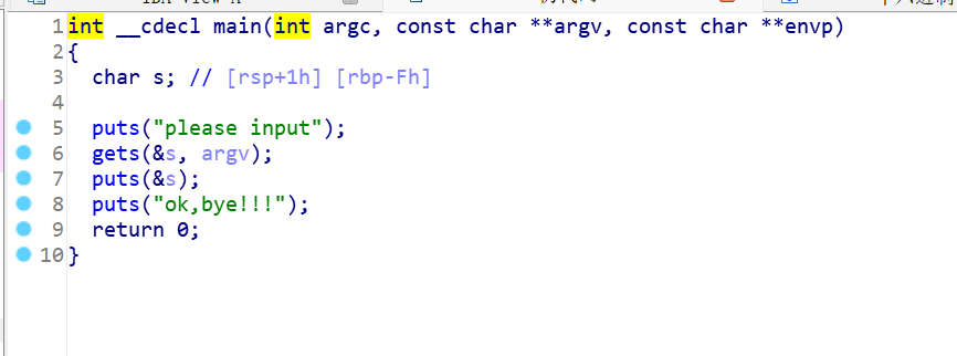 gets函数这行的意思是它会把我们在“please input”后输入的东西放进&s中(即gets函数的缓冲区)