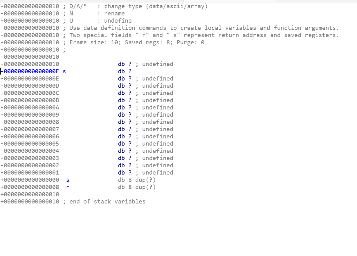 自上往下从第一个函数s到最后一个函数s的地址(都是标蓝的)便是缓冲区大小