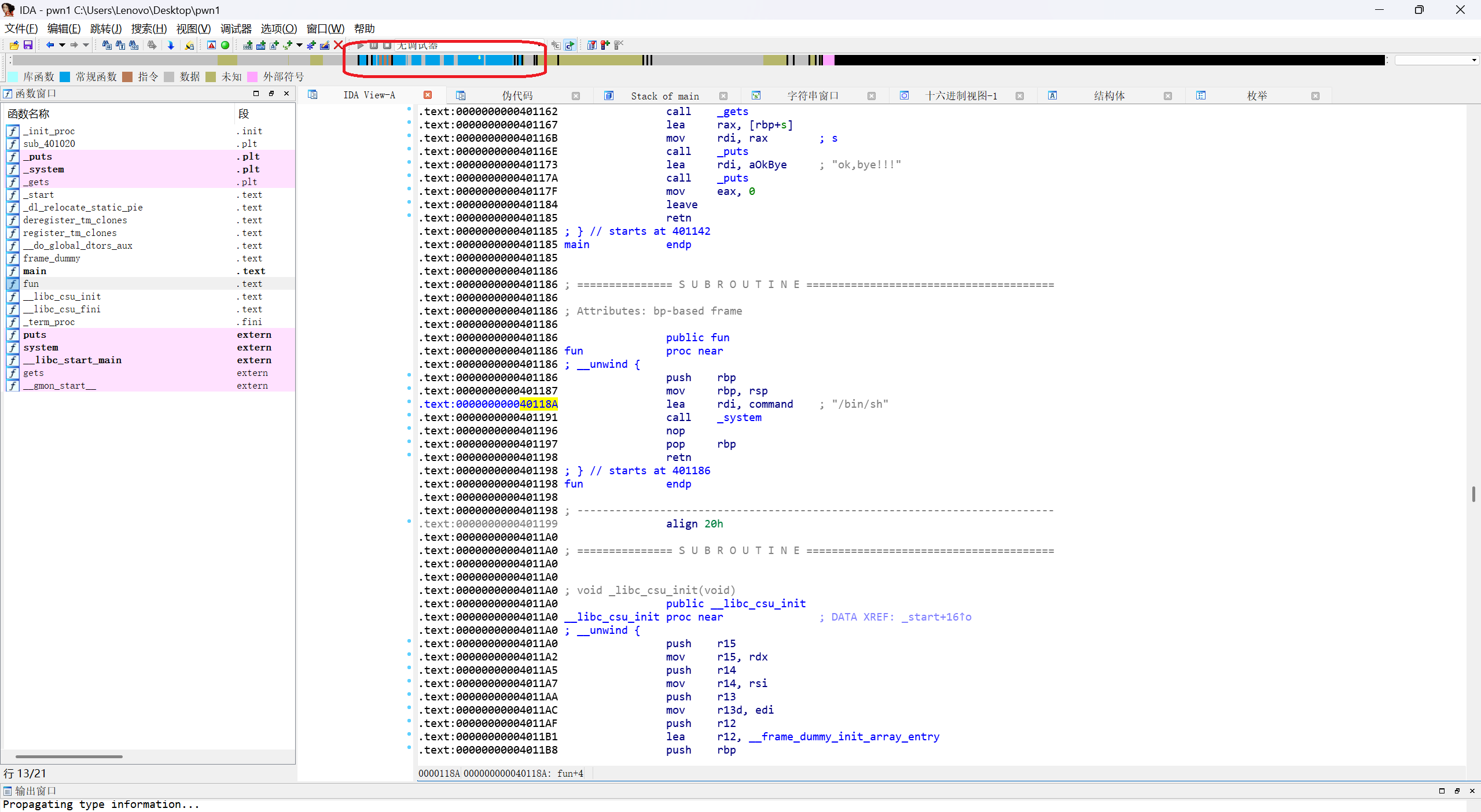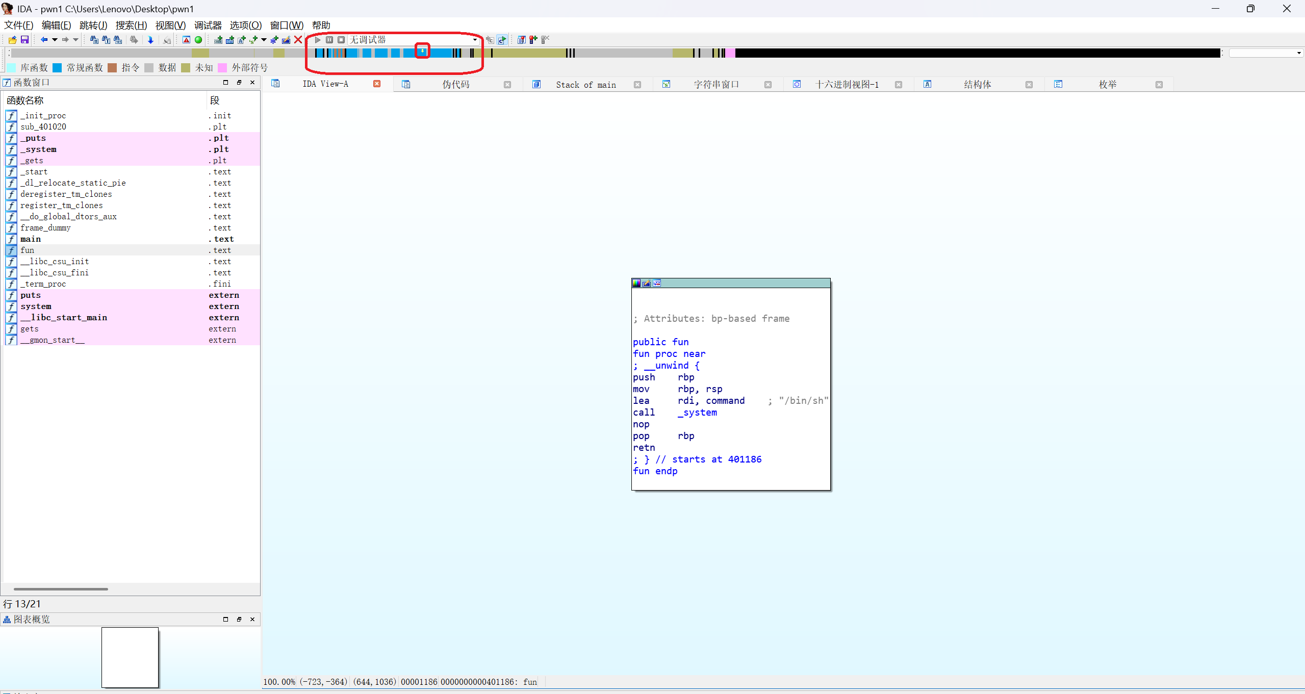 我们拖动IDA上方蓝条