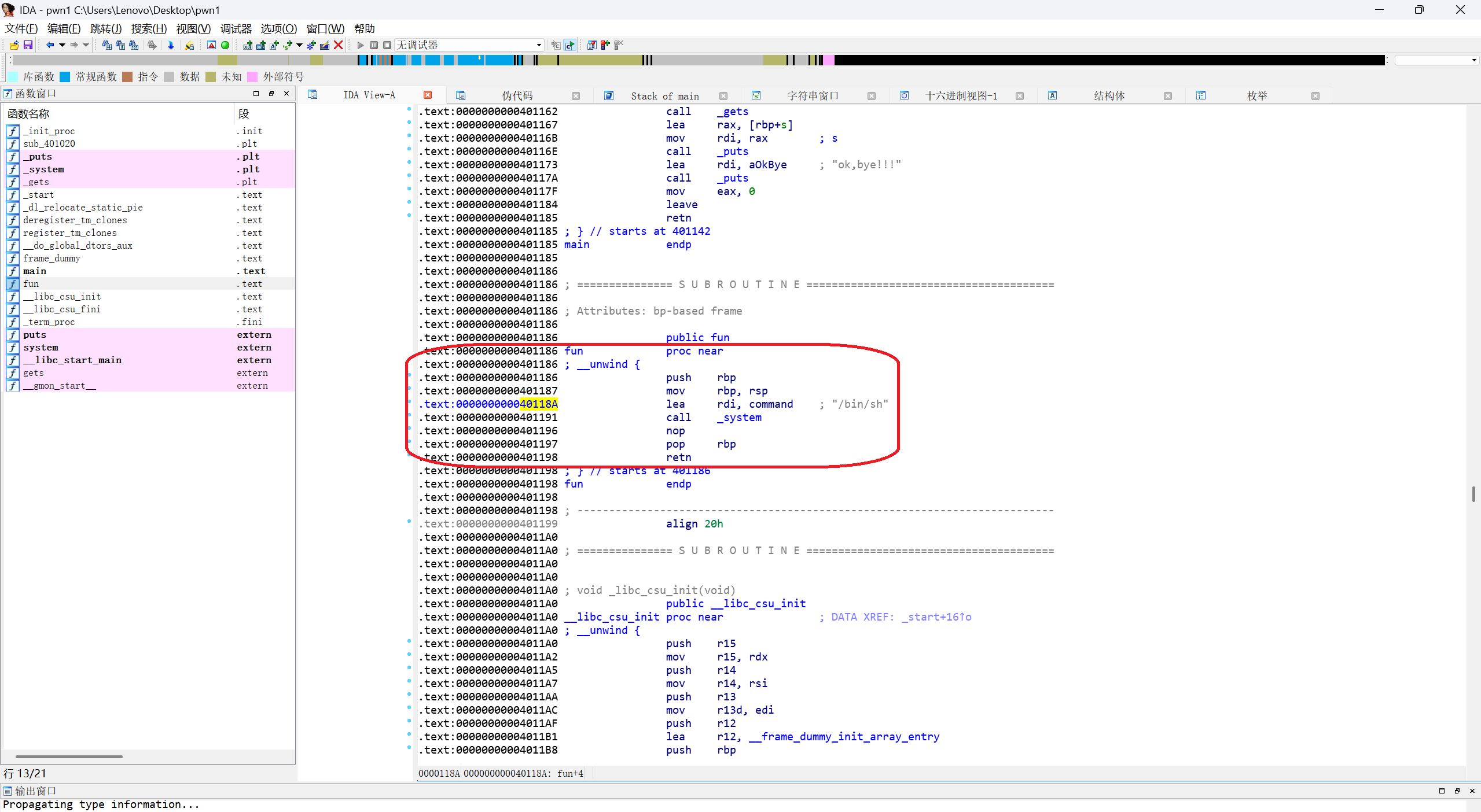 这里我们找到的后门函数地址是fun的