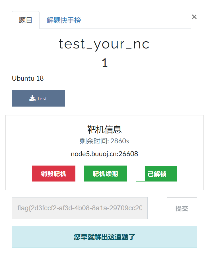 输入cat flag即可找到flag,返回题目输入答案并提交即可(cat:查看文件内容)