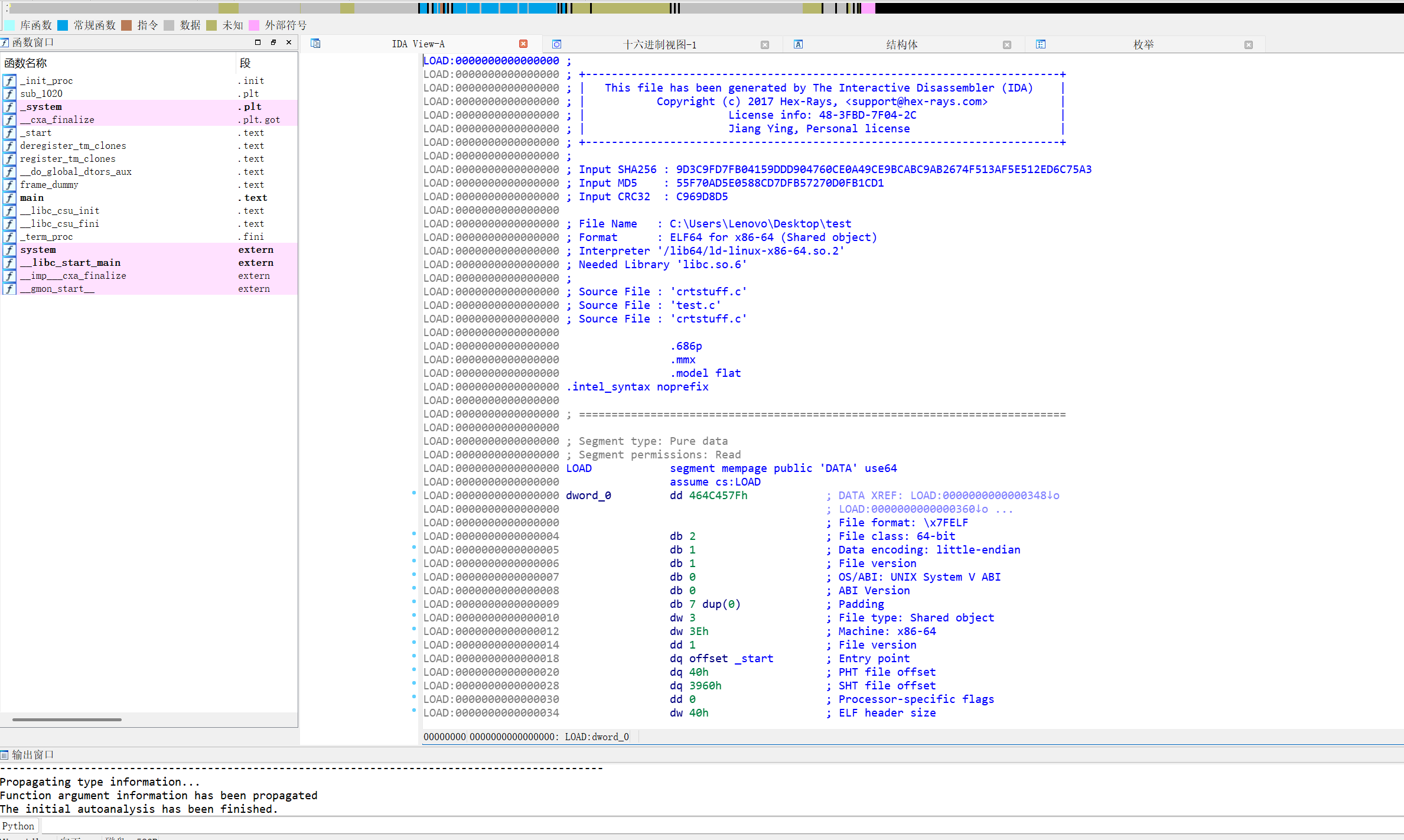 后我们把文件拖入IDA(64位)进行查看(IDA自行网上搜索下载安装)