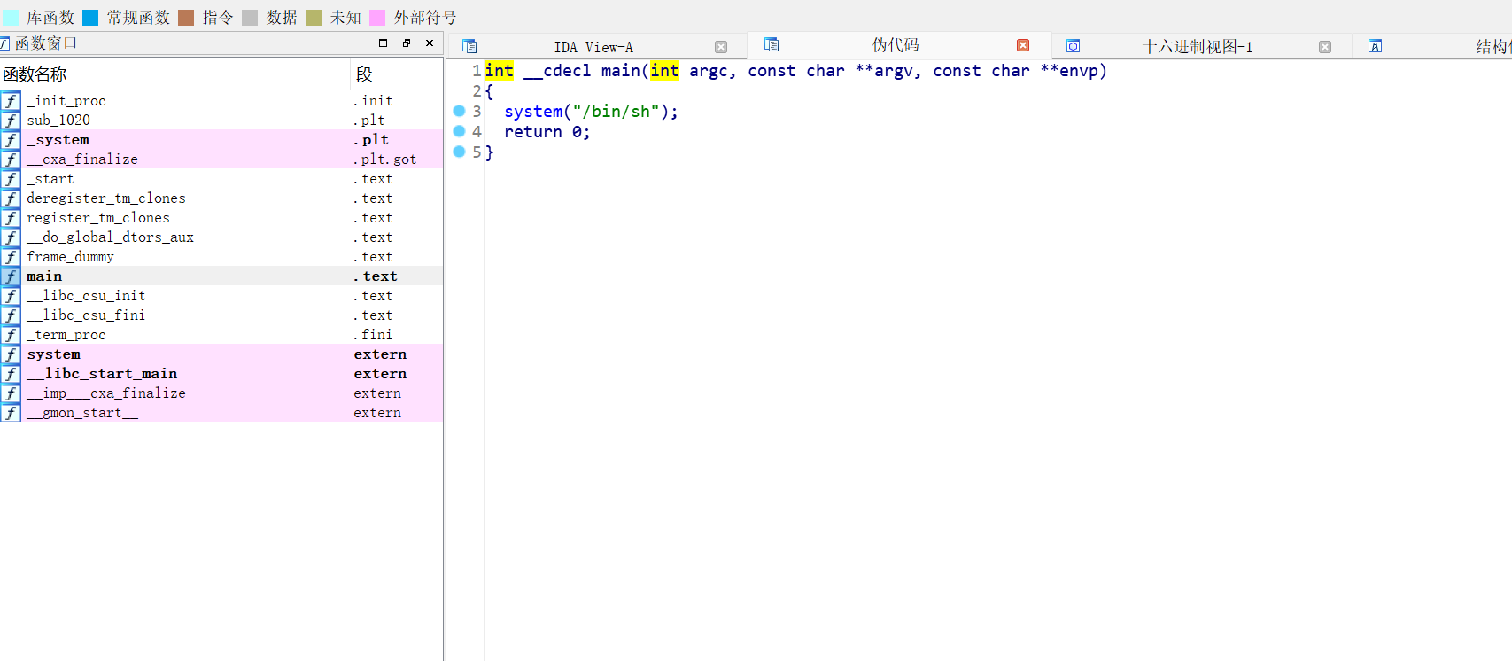 先显示出的是汇编代码,我们按F5转换为伪代码C语言,便于我们查看(转换成C语言后,可以按Tab键回到汇编代码)